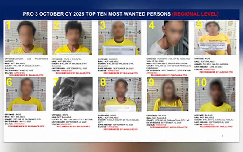 CAMP OLIVAS, Pampanga — Isang malaking tagumpay ang naitala ng Police Regional Office 3 (PRO-3) matapos maaresto ang lahat ng 10 Regional Level Most Wanted Persons (RLMWPs) sa Gitnang Luzon sa loob lamang ng 14 araw.
