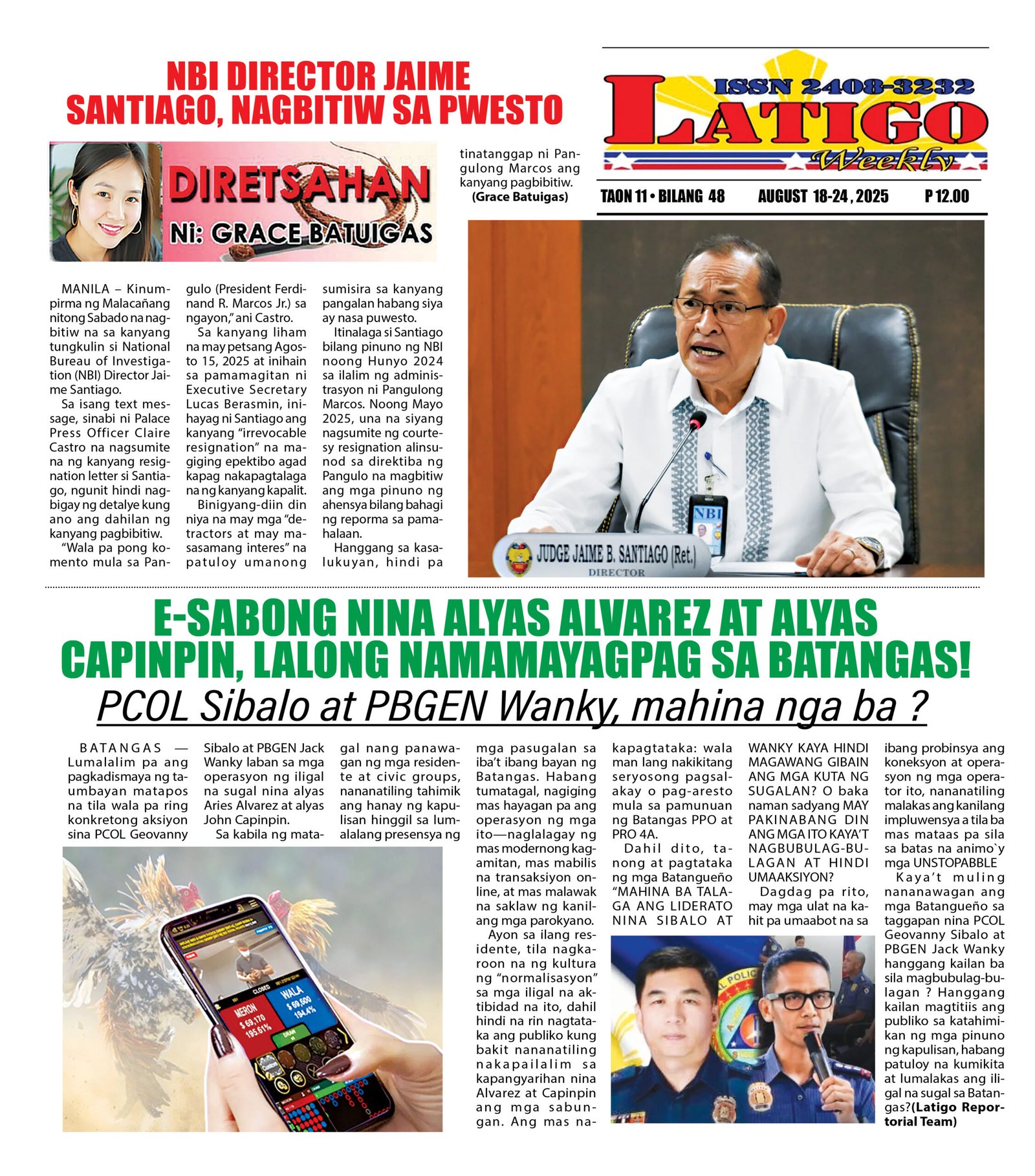E-SABONG AT MGA SUGALAN SA BATANGAS PATULOY SA PAGBENGGA SA LALAWIGAN Posted on October 21, 2025 Posted by LATIGO REPORTORIAL TEAM