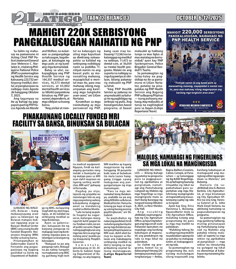 MAHIGIT 220K SERBISYONG PANGKALUSUGAN NAIHATID NG PNP Posted on October 21, 2025 Posted by LATIGO REPORTORIAL TEAM