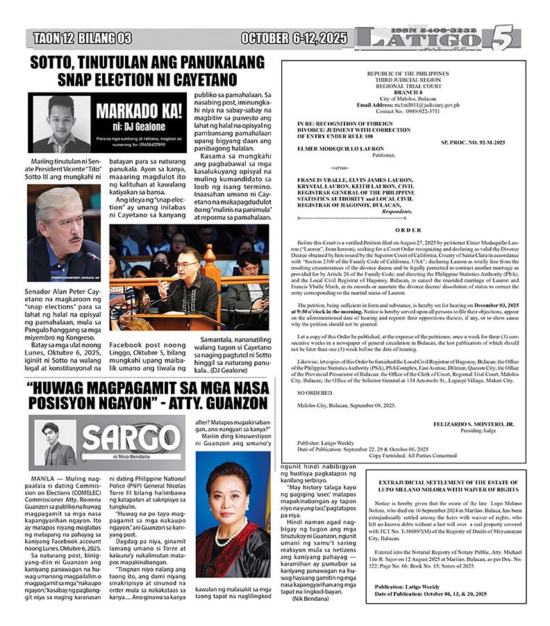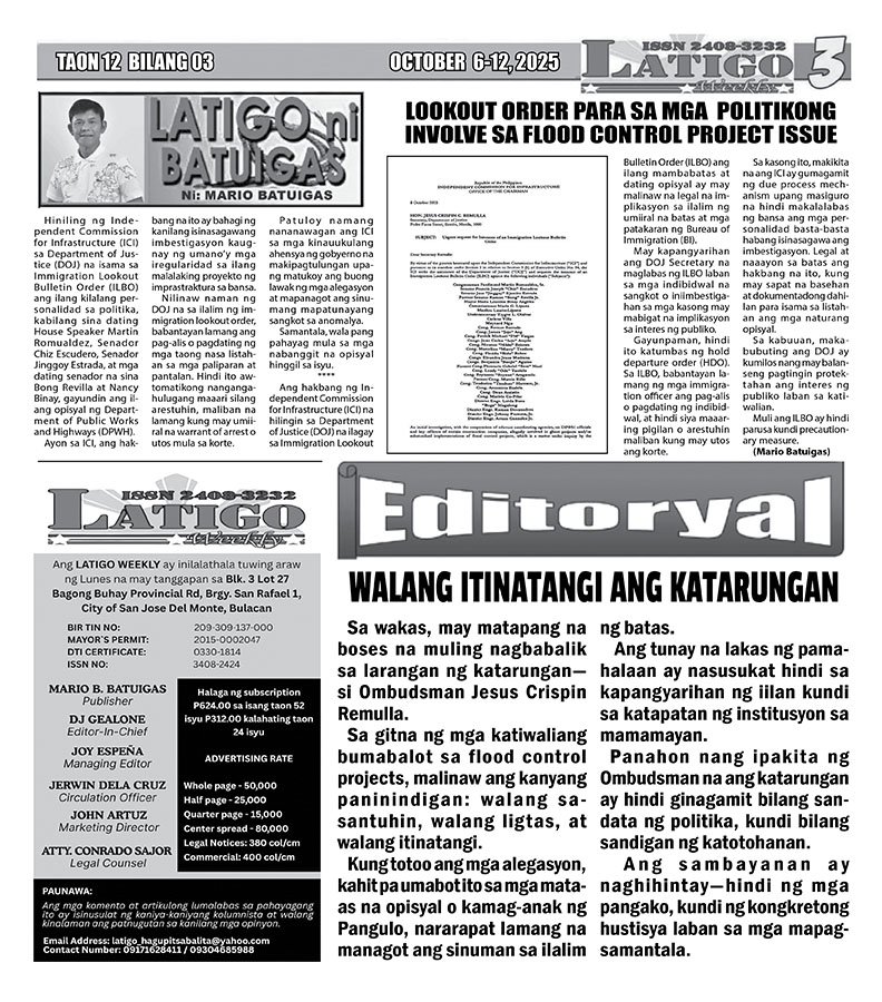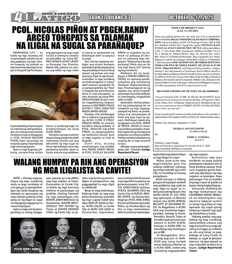 Posted in VIDEO'S & PHOTOS LATIGO OCTOBER 6-12, 2025 Posted on October 19, 2025 by LATIGO NEWS ONLINE Spread the love