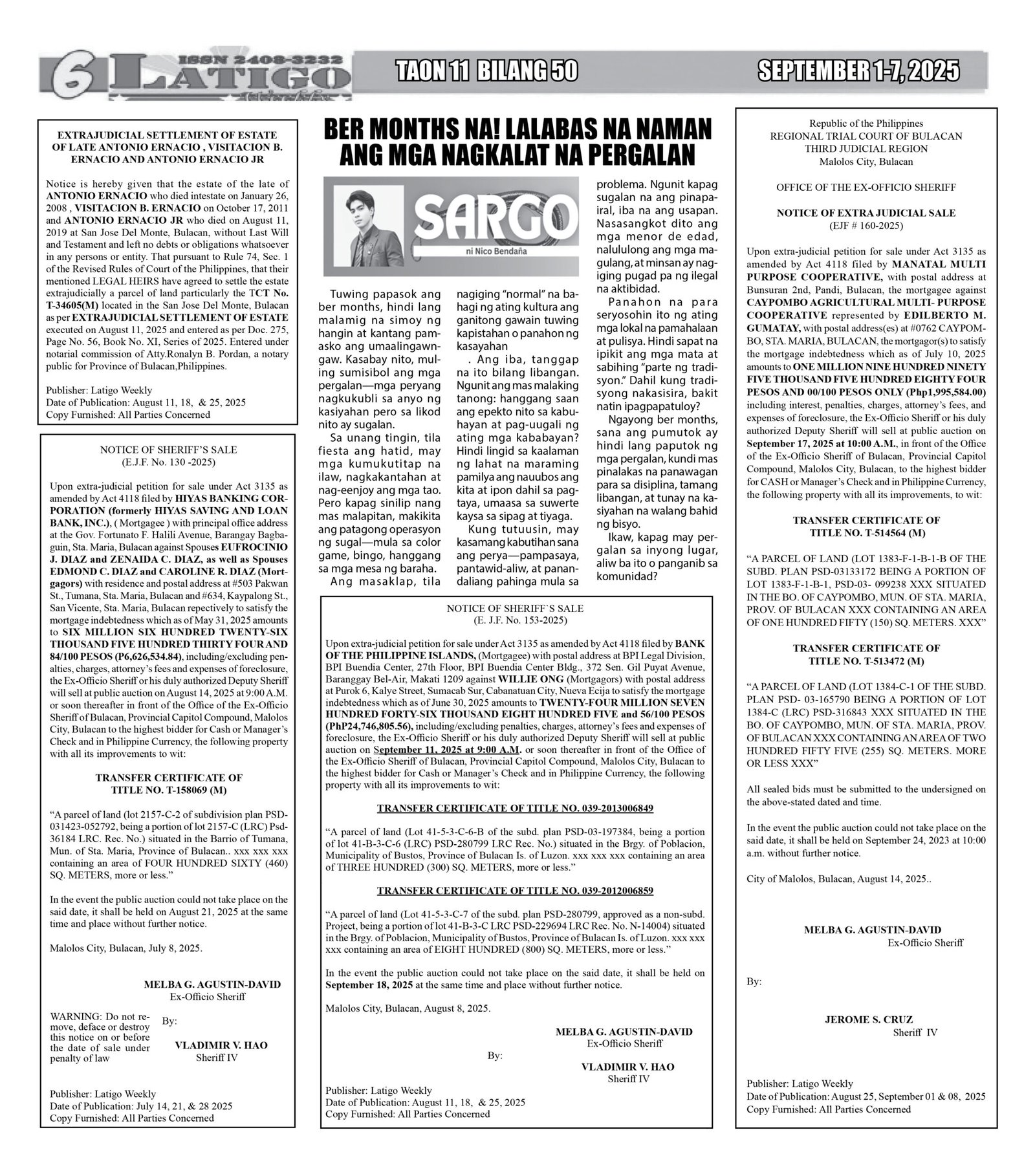 Posted in VIDEO'S & PHOTOS LATIGO SEPT 1-7, 2025 Posted on September 16, 2025 by LATIGO NEWS ONLINE Spread the love