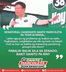 Matapang na ipinarating ni Senatorial Candidate Rodante Marcoleta ng Team Alyansa ang kanyang saloobin tungkol sa matagal nang mga problemang kinakaharap ng bansa at ang patuloy na pagbabalik ng mga dati nang mambabatas sa Senado.